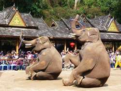 景点说明:野象谷坐落在景洪市勐养镇以北一个叫三岔河的地方。位于勐养自然保护区南部,距州府景洪城区约50公里,交通十分便利。野象谷,是因野象经常出没而得名,既然有野象出没,此处的自然森源林资就不需作过多赘述了。1990年开始投资兴建以观赏野象和游赏热带雨林为主要内容的森林公园。1996年正式开放接待国内外游客。区内河谷纵横,森林茂密,一片热带雨林风光,生长着亚洲野象、野牛、绿孔雀、猕猴等珍奇动物。由于景区处于勐养自然保护东西两片区的结合部,森林茂密,鸟兽众多,为各种动物游行的通道。到这带活动的野象较为频繁,成为西双版纳唯一可赏到野象的地方。在这个森林公园内,建有动物观赏区,原始森林探险区和接待中心,总面积约占370万平方米,其中,建筑面积2800余平方米,水面8000平方米。目前正在实施续建工程,将续建观象高架走廊2936米;修建高空索道1886米,新建步行游道3380米。游客到野象谷,白天可观赏训练过的大象表演节目,夜晚可一睹从森林走到此地觅食的真正野象风姿。有时天还没黑便有野象从高架长廊旁大摇大摆地走动,看到游人还驻足片刻,打量这些不速之客几眼。有时几群野象会同时出现于沟谷中,象群相互驱赶的吼叫声此起彼伏,令初来刚到的远方来客胆颤心惊。有些大象群并不惊慌,当着游人照样悠闲地觅食。除此之外,在这里还可到蛇园观赏各种各样的蛇,品尝用蛇与乌鸡烹制的龙凤汤。同时还可以到蝴蝶养殖园观赏绚丽多彩的彩蝶,购买用蝴蝶制作的工艺品,但您千万别被这些人造景观所迷惑。真正的自然风光在原始森林之中隐藏着呢,走进林间,只见清澈的溪水缓缓而流,溪边树木茂密生长。在这里可观赏到植物绞杀、植物板根及老茎生花等观象和许多的珍稀植物,使你赏尽热带雨林风貌。野象谷充满神秘、奇异,它那优美的自然景色,惊心动魂的探险活动,一定会让你赏心悦目,终生难忘,让你了却回归自然的夙愿。